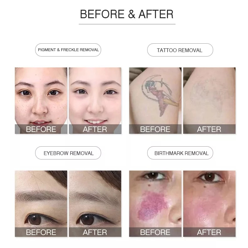 It can effectively remove chloasma, coffee spots, freckles, sunburn, age spots, nevus of Ota, etc. Acne scars, skin whitening, and removal of all colors tattoo
